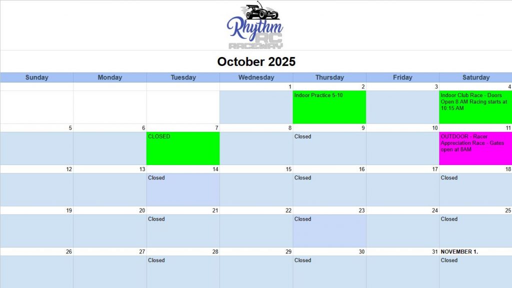 Outdoor Race and Practice Times Vary – See Calendar Below
